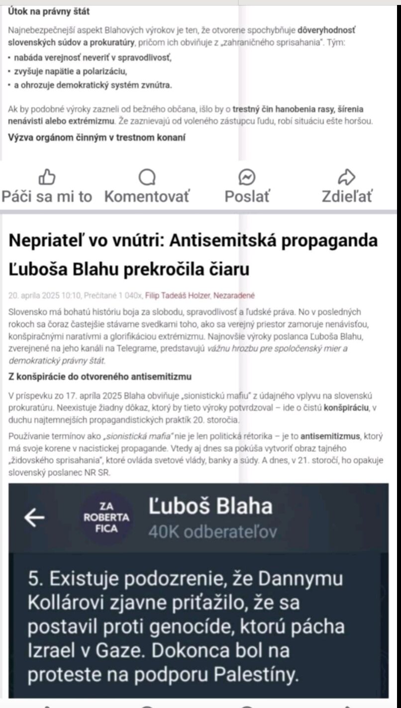 23.4.2025 (SITA.sk) – Na vyjadrenia europoslanca a podpredsedu strany Smer-SD Ľuboša Blahu o sionistickej mafii v prokuratúre kriticky reagoval Ústredný zväz židovských náboženských obcí v Slovenskej republike. Takéto vyjadrenia sa podľa zväzu periodicky opakujú už dve storočia.